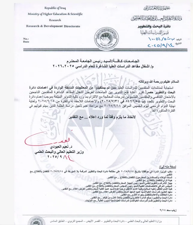وأكدت الوزارة أن هذا الإجراء يأتي في إطار استثمار الطاقات الاستيعابية المتاحة وتوفير فرص إضافية للطلبة المتقدمين، وبما يسهم في تعزيز المسيرة الأكاديمية وتوسيع نطاق القبول.